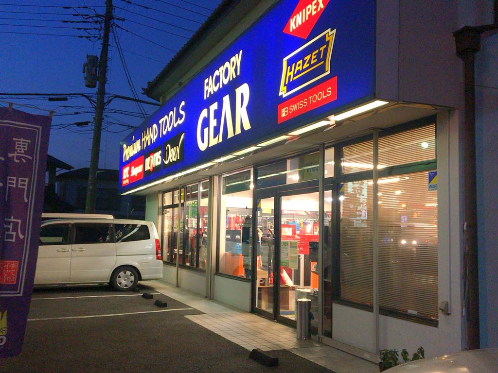仕事とNSR80の整備が終了して、さぁ帰るかっていうところですけども、今日仕事の助っ人にやって来ていたハットリが『ちょっとFactory Gear寄ってかね??』と。