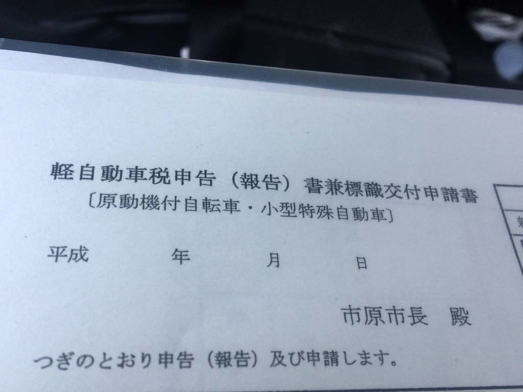 この前さいたま市民から市原市民に寝返る申請をしに市役所に行った時についでに貰って来た税金払うんでナンバー頂戴書。