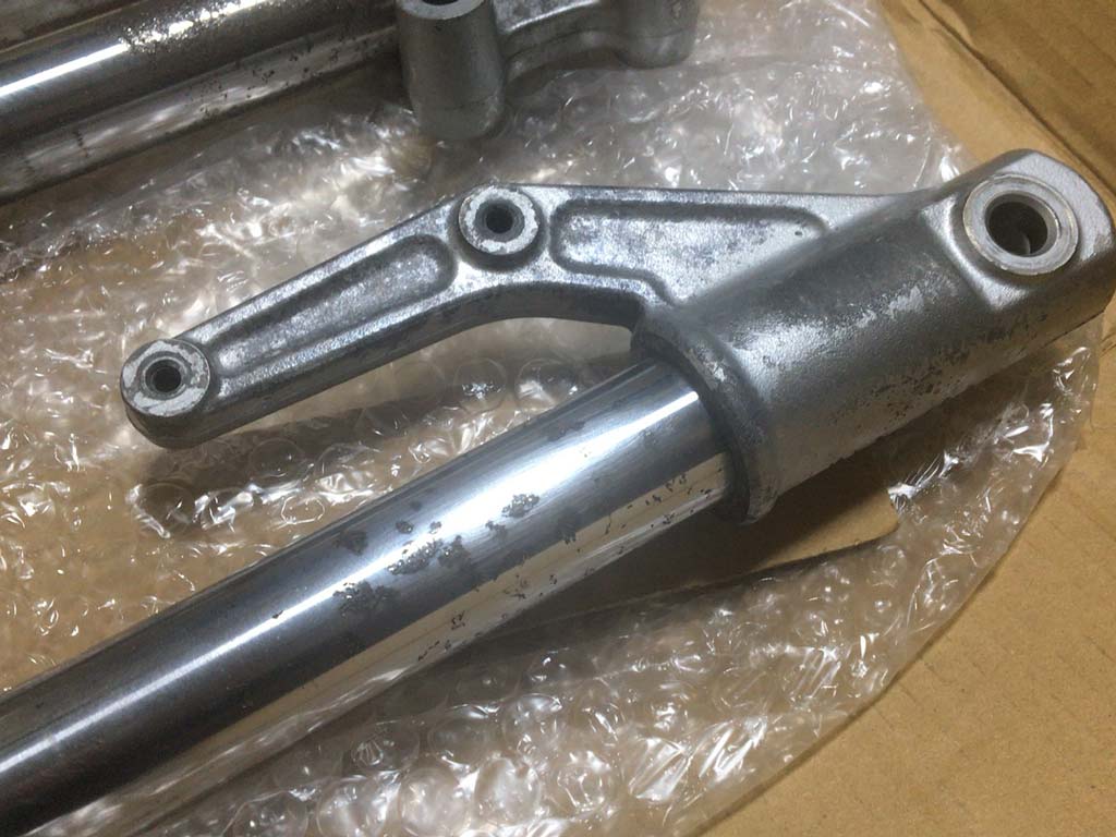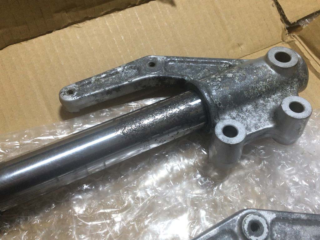 そうはいっても可動部は錆びてない訳だし、そもそもこのフォークに性能を求めたり美しさを求めたりするってんでもないので、ヤフオクに出てたやつの中で錆と値段のバランスが一番良さそうなのを買ってみた。