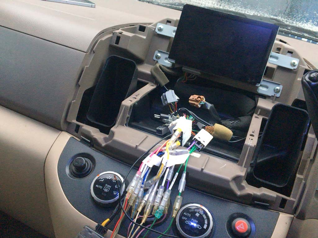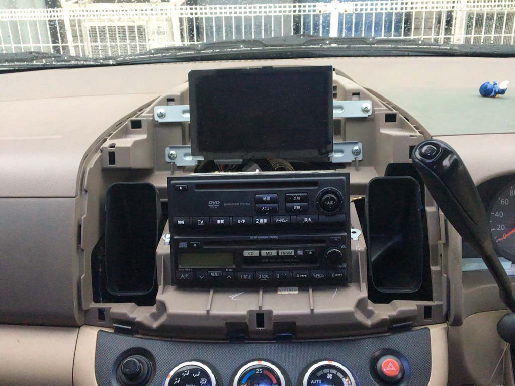 ダッシュボードのカバーとナビ本体を外して、買ってきた変換ケーブルを挟んでサクッと完了。ラジオが入るようになった。