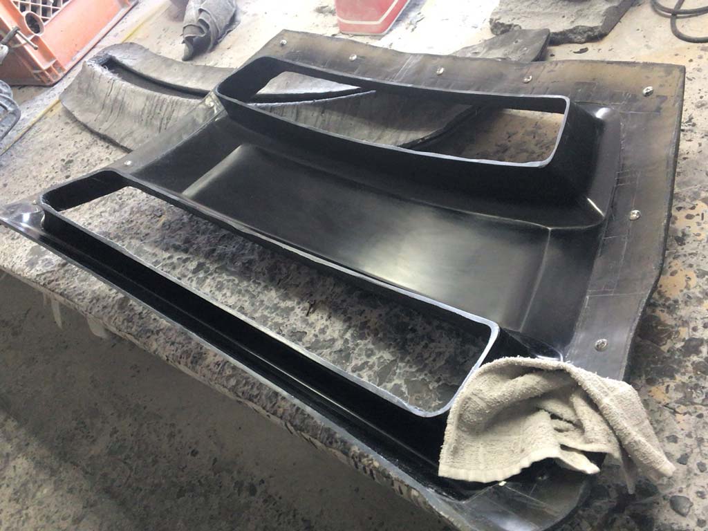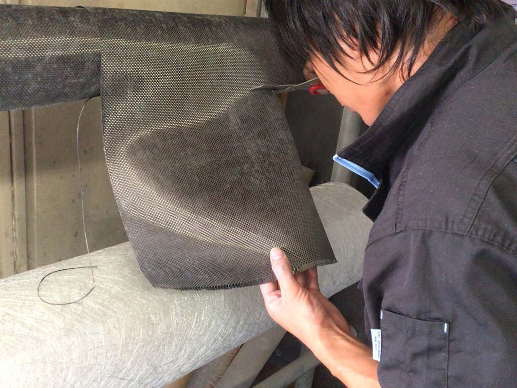 切り出したカーボンのシートを工場長に教えてもらいながら、ヅッカーパイセンが真剣に貼りこんでいる頃、僕もカーボン製品を初制作。