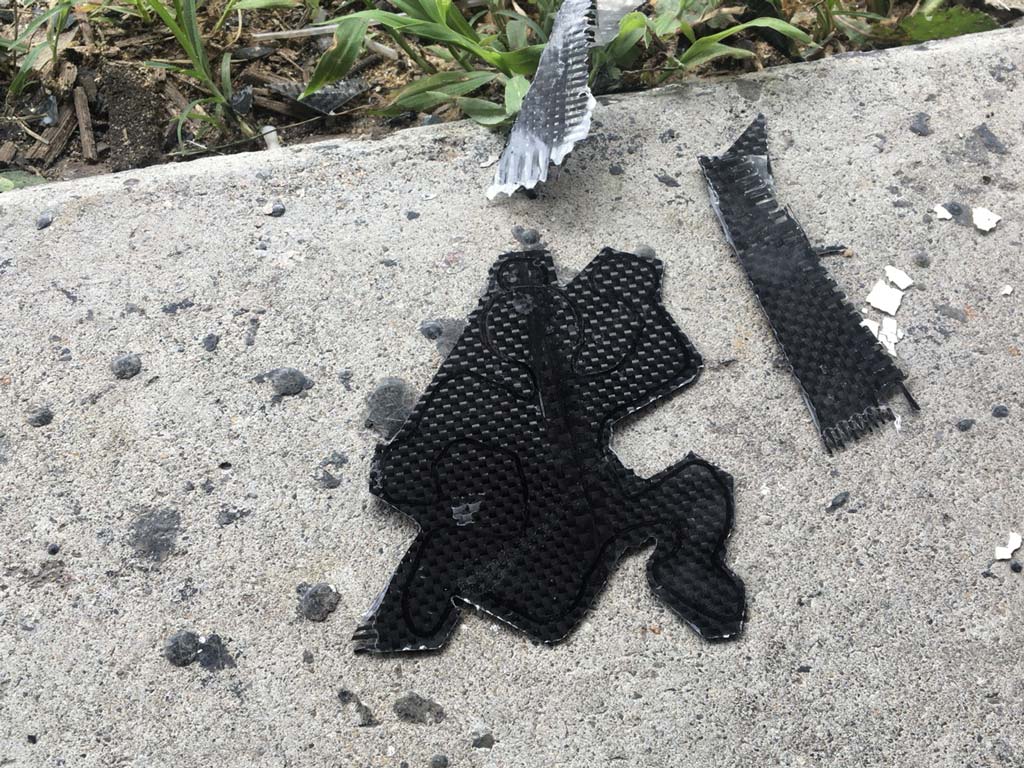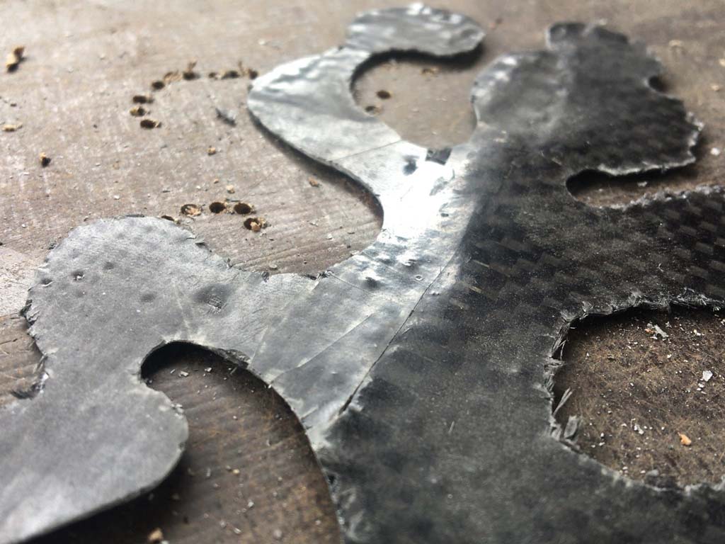 で、今朝は工場長が打ち合わせの電話か何かしてる間に、僕のカーボン処女作品『のり』をテンション高い作品に加工することにする。