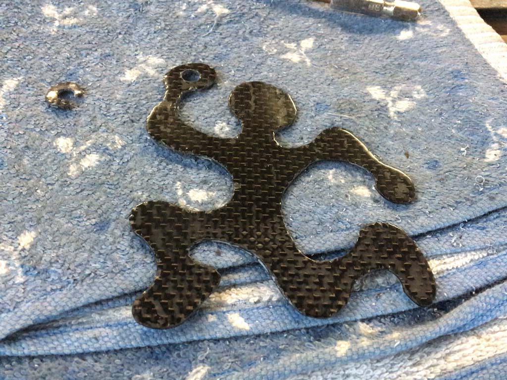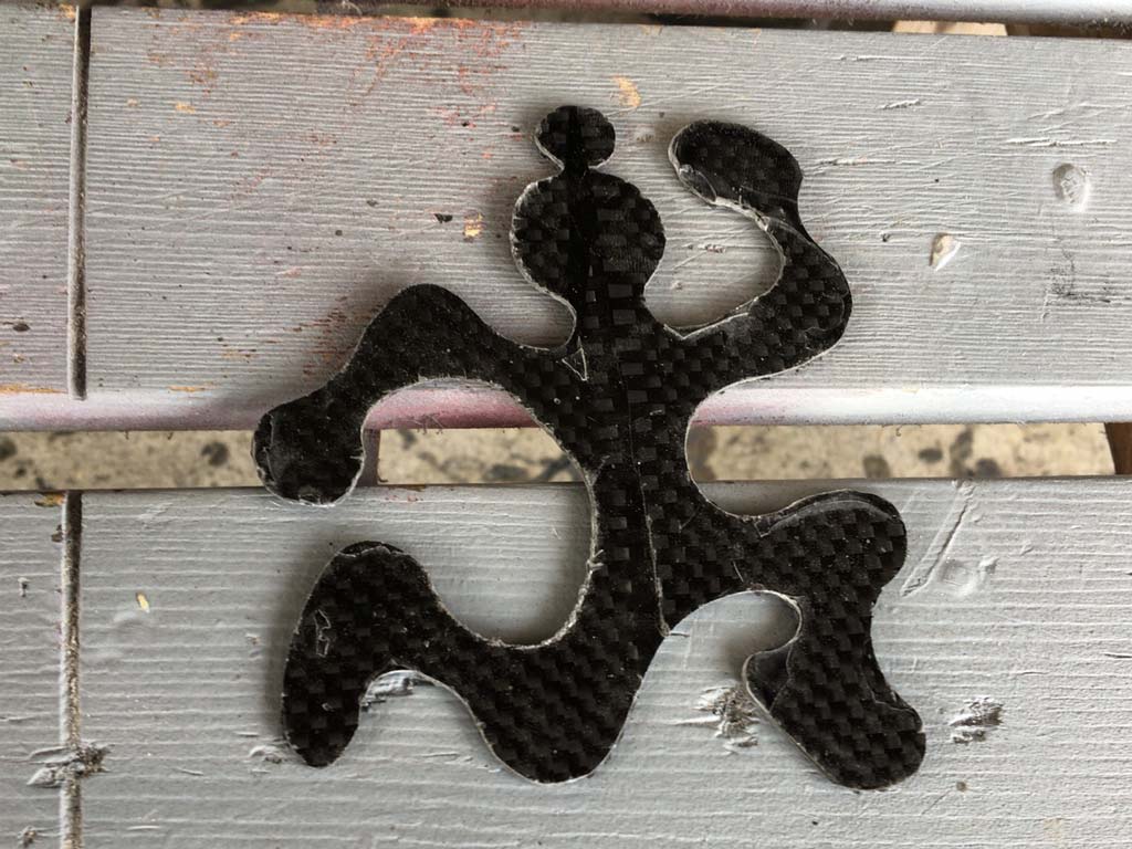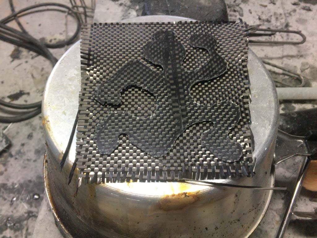まず、前に接合部が割れて表面の樹脂割れを起こした後で、同じくらいのカーボンのマットを拾ってきてまたガラスの上で樹脂を載せといた。