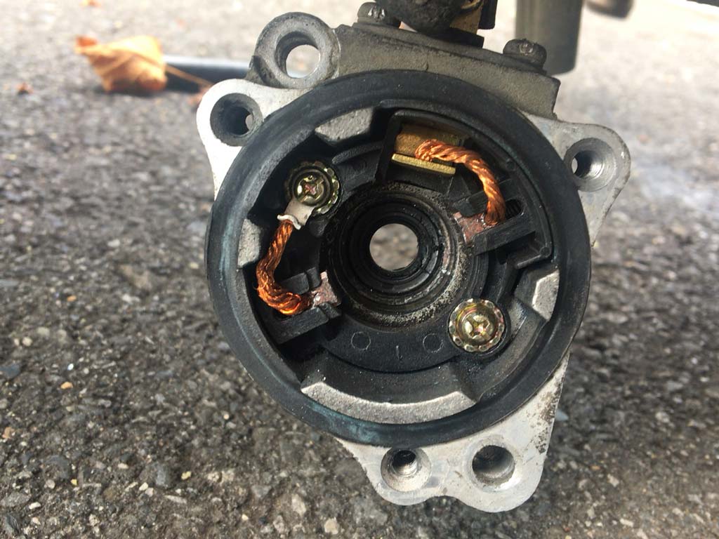 っつぅことで、社長が組んでチェックしてくれた時にはニョーンってなってた交換後のブラシが、なぜかいきなり固着していたみたいで、バキッと外してZoilのグリスを塗って組み込み直し、エンジンに組み込む前にジャンプケーブルでチェックしてみたところ、キチンと回るようになった!