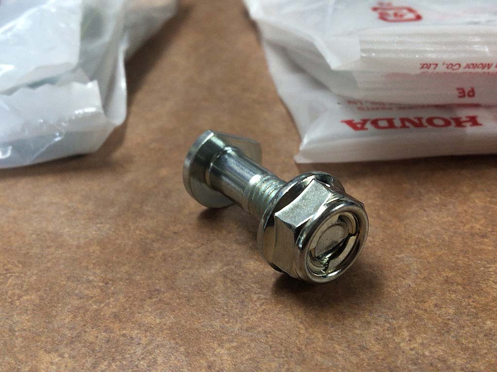 あのボルトはホンダのプロアームものは共通だろうし、さすがに既に新品が出ないってこともないだろうとは思うのだけど、もし出ないとしても頭が平らなM8のボルトを買ってきて良い感じに半月状に切りゃぁ良いんじゃねぇかとも思う。