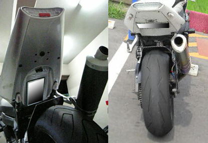 で、リアウィンカーを貼付けタイプに変更する時ついでにフェンダーレスにしようと思ったんですけど、せっかくスッキリさせるんだしサーキットで転けた時に万が一ってコトにならんようにしようっていうのと合わせて色々考えた結果、テールカウルのアンダーパネルにナンバープレートも貼付けてしまうコトにしたんですよ。