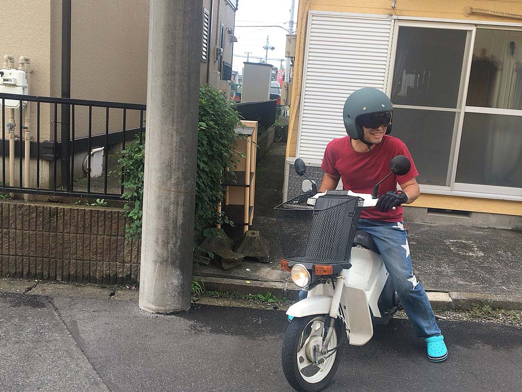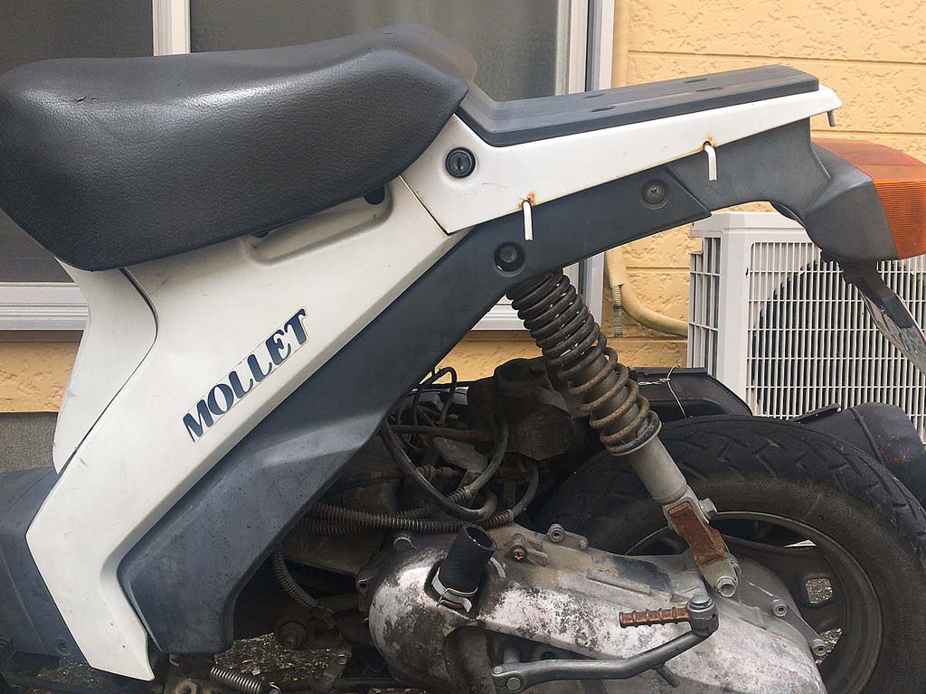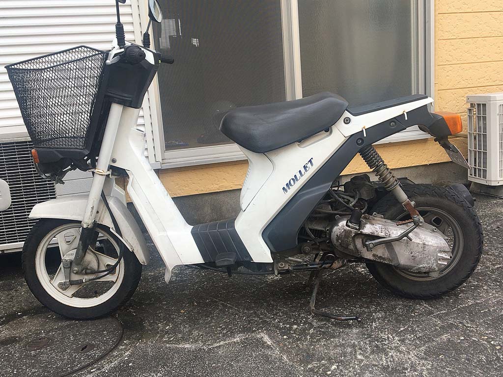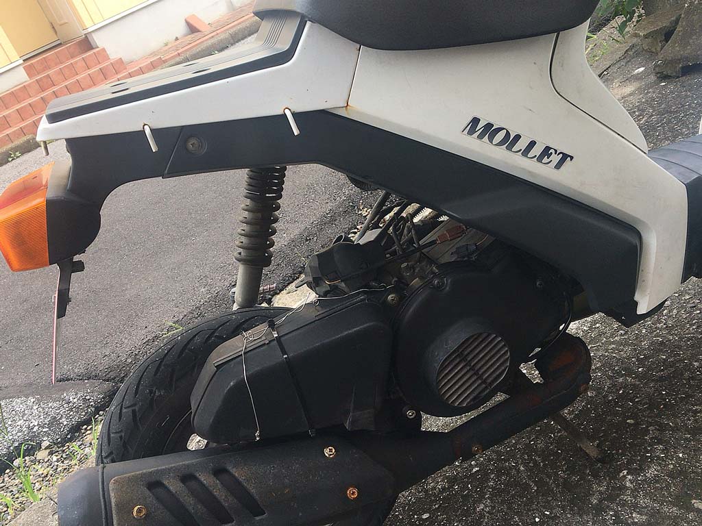 ちょうど部屋の目の前の駐車場(幻の0番)でMolletをいじくってたので、『せっかくだしYou乗ってきなYO♪』ってことで、我が家のMolletの正装を身に着けてもらった。