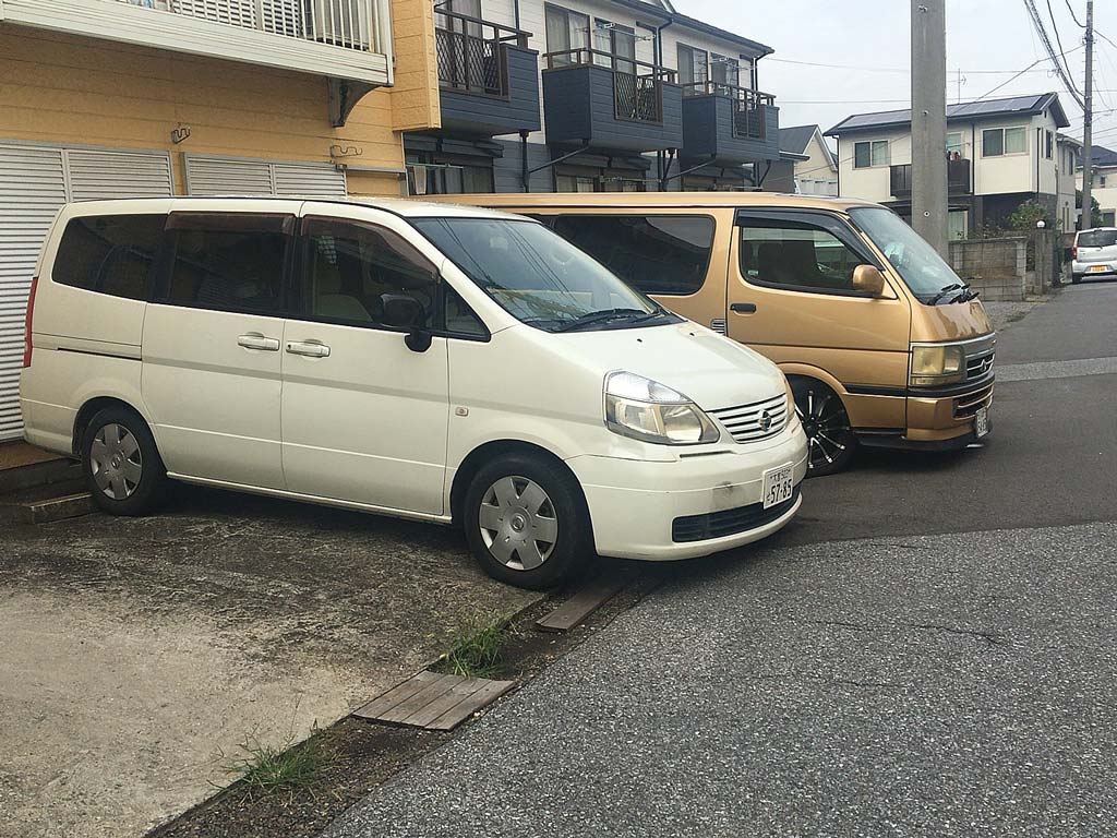 今住んでるアパートの駐車場は、僕のセレナですら収まらなくてずいぶんはみ出すってのに、もひさんのハイエースってばはみ出しっぷりが留まるところを知らない(笑)
