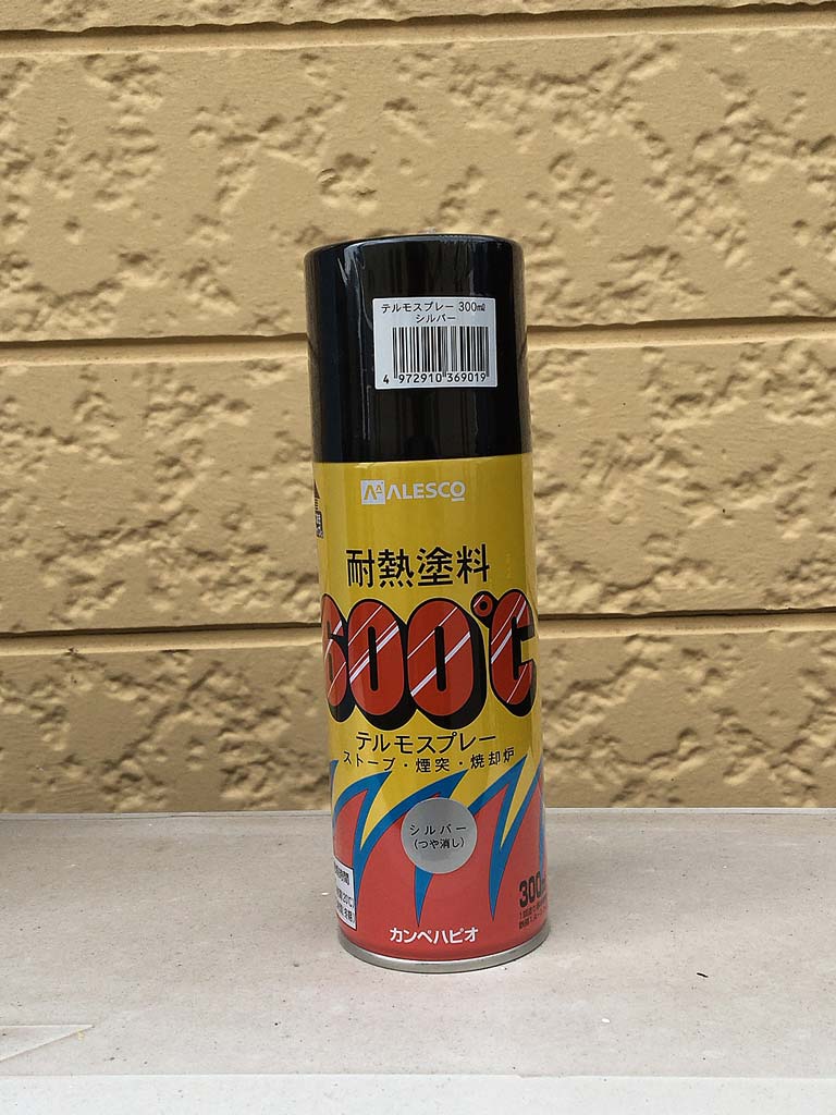 お、耐熱塗料ってそういえば自分でちゃんと使うの初めてだと思うんだけど、最初銀色なんなー♪