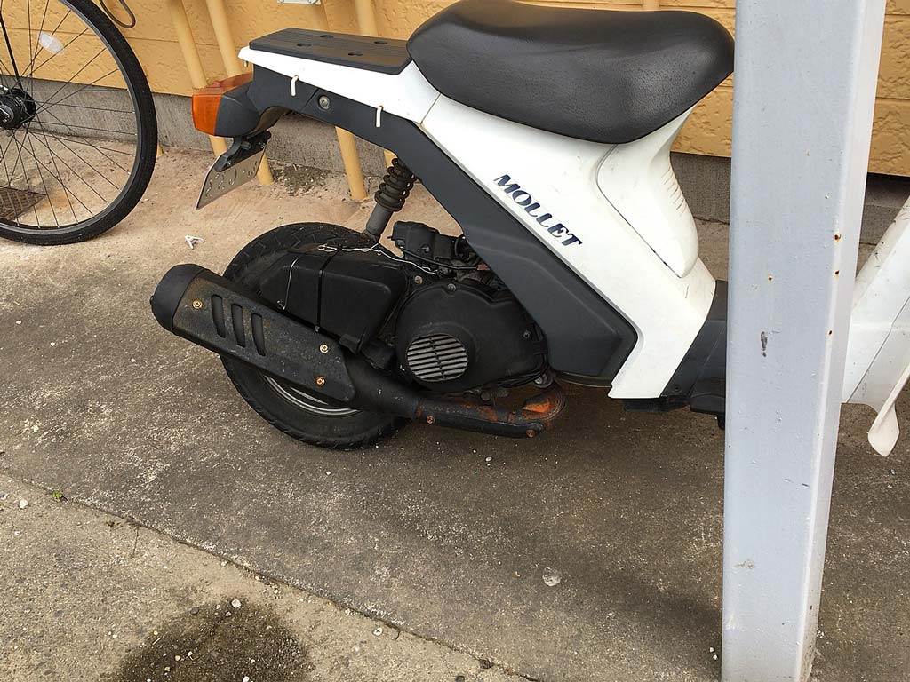 そんなこんなでマフラーの耐熱塗料が乾くまでに、今Molletに着いてるノーマル風マフラーを外しておくことにする。