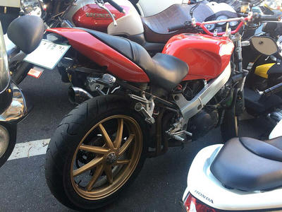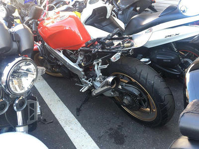 フロントフォークのインナーチューブなんか僕のよりも綺麗なくらいだし、メーカーは判らないけどバックステップも入ってたり、余裕があったら街乗り兼スペアに僕が欲しいくらいなのだけど、何しろ僕は今無職だかんな…orz