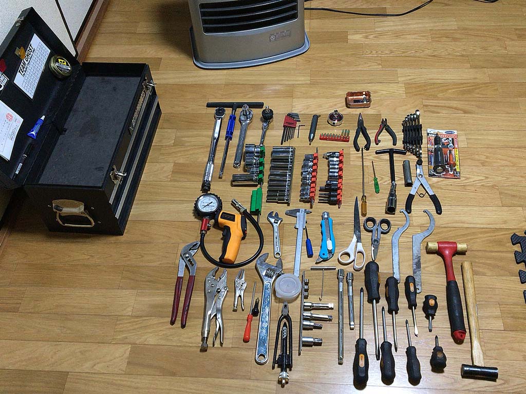 そういう訳で工具箱の中身を一度全部出して眺めて見ると、R1でしか使わなかった工具やMolletでしか使わない工具、特にMolletをいじくるのに買い足した工具が増えていて、引き出しの中が圧迫されていた様子。