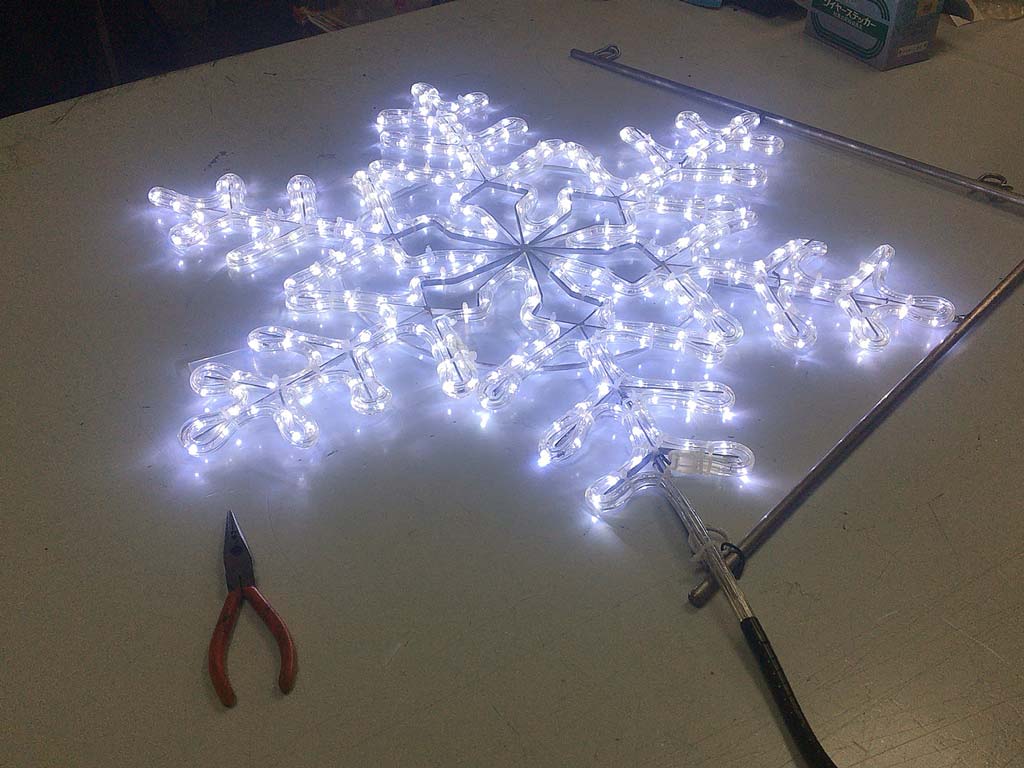 いろいろやらせてもらったのだけど、このシーズンはやっぱりクリスマス系の需要が増えるらしく、それっぽいイルミネーションをせっせと作っていた。