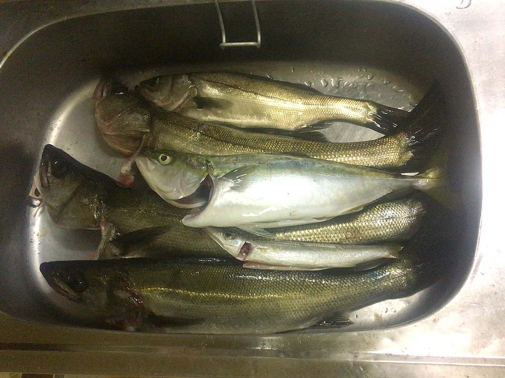 スズキの皆さんとイナダのようなハマチのようなのと、小振りな名前を知らないサンマみたいなお魚さん。