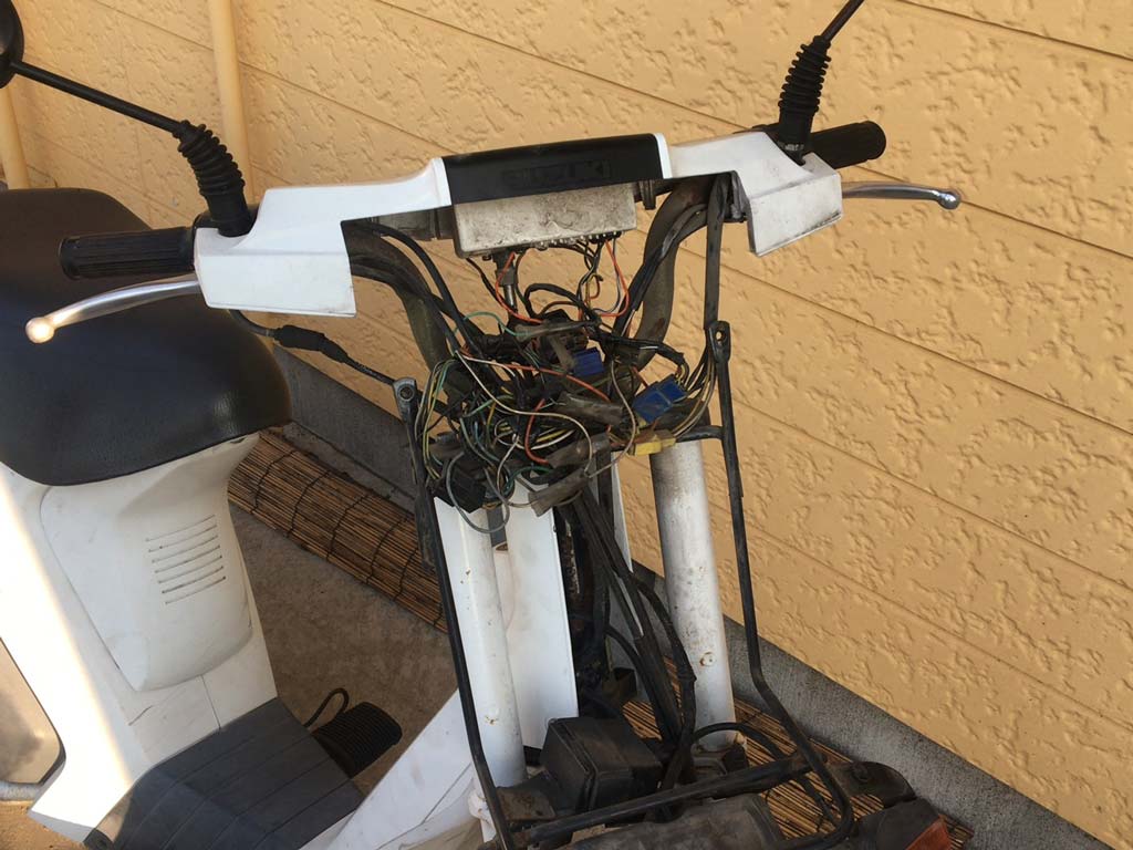 確かハーネスはアドレスV100のを使ってるって言ってたはずなので、そこからMolletのメーターに接続するために加工した跡があるのは判るのだけども、ひとつのランプでウィンカーとオイルの残量警告に反応するようにするっていう理屈が判らないので見なかったことにして組み直しておいた。