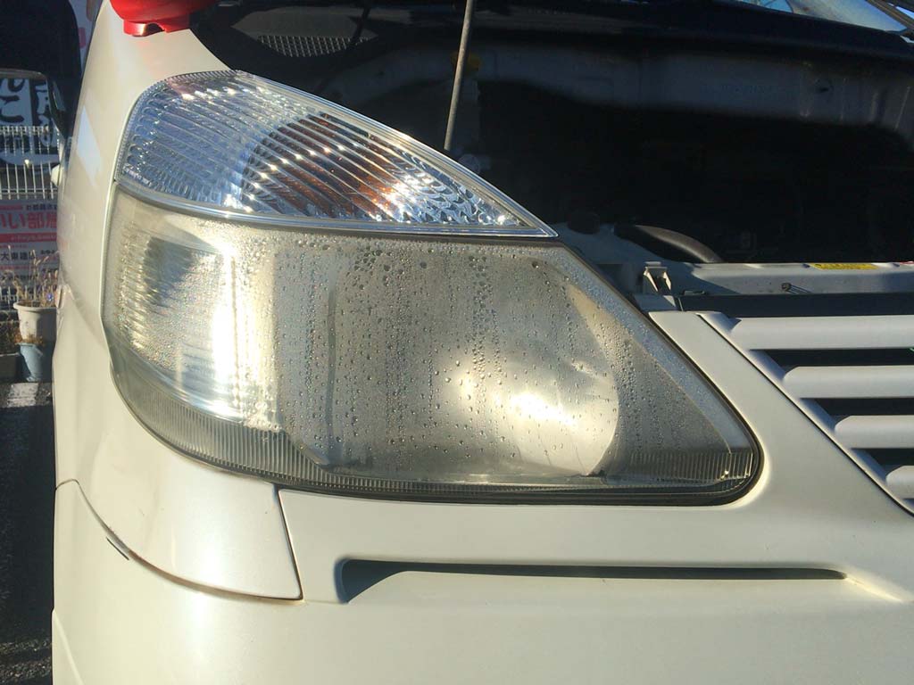 買ってきた時からなのだけども、右のヘッドライトがちょっと雨が降るとビショビショになりよるのですよ。中が。