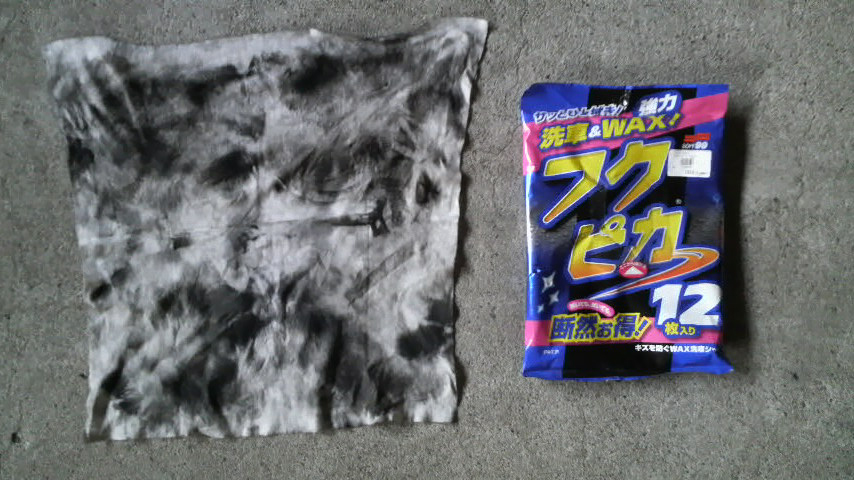 フクピカは適度に畳んで汚れたら別の面を使うようにして、それを表裏両面で普通は1枚でホイールまで含めてバイク1台賄えるんですけども、今回はあまりの汚れっぷりに前後ホイールだけで1枚必要だった。