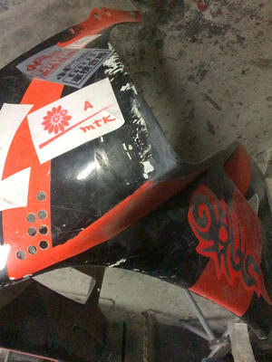 着いて早々に、工場長に預かってもらっているVFRのカウルを見せてくれた。