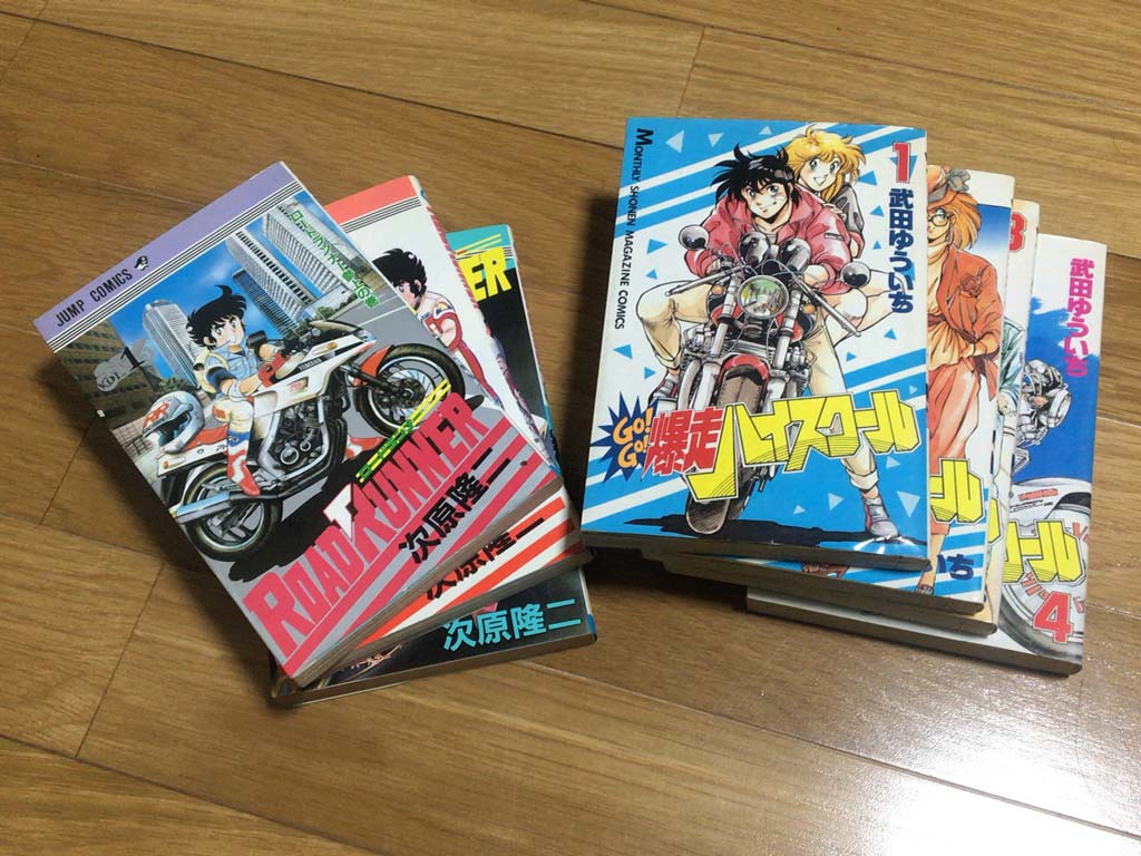 明日までには体調を回復しないといけないので、今日は薬を買ってきて飲みつつずっとゴロゴロしてたんですけども、せめてバイクなマンガでも読もうとキリンでも読み返そうかと思ったのだけど、ふと思い出してロードランナーとかGoGo爆走ハイスクールとか読んだり寝たりしてた。