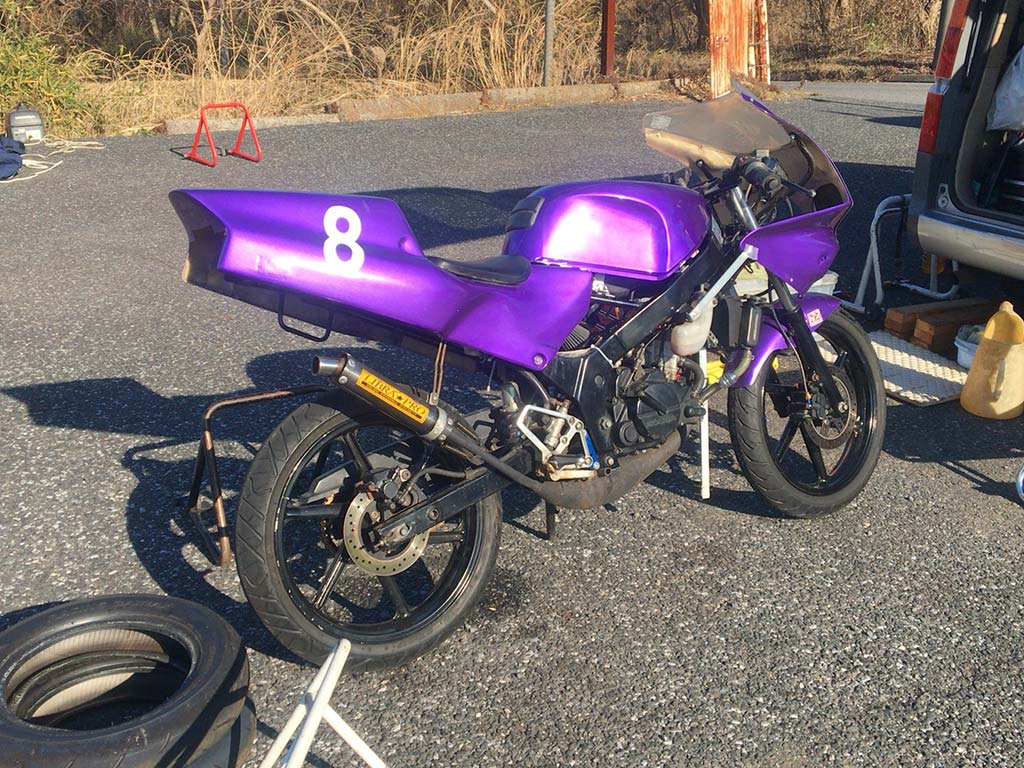 ランパプのNS-1は水回りその他が不調らしく、NSR50ミツバチ号で走ってたのだけど、ツナギがオヌーだったのとヘルメットがドラヘルだったのとで、走ってる時に探すのがちょっと難しいf(^_^;)