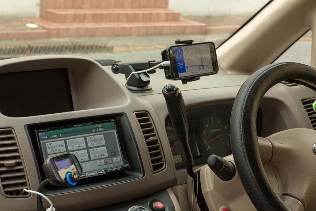 ついでなんで、今までiPhoneでナビのアプリを使う時はメーターパネルのところに立て掛けて見てたのだけど、そこだと急に電話が掛かってきた時に困るのと、何か操作しようっていう時もハンドルが邪魔で不都合だったんで、車載ホルダーも買った。