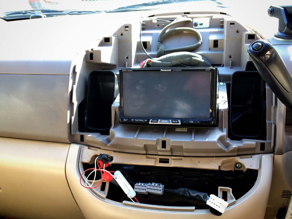 そういう訳で、純正のナビのディスプレイは着いてるけど点かないっていう状態なのだけど、もちろん純正のナビとカーステを取っ払っているのでバックモニターも使えない。