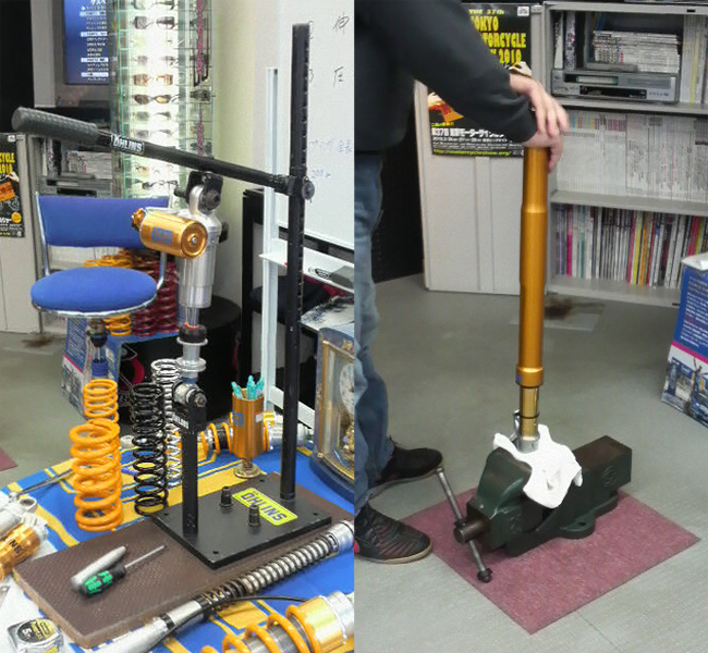 前後サスのスプリングがセットされてないヤツを実際に動かしてダンパーの効果を体感するマシーン。