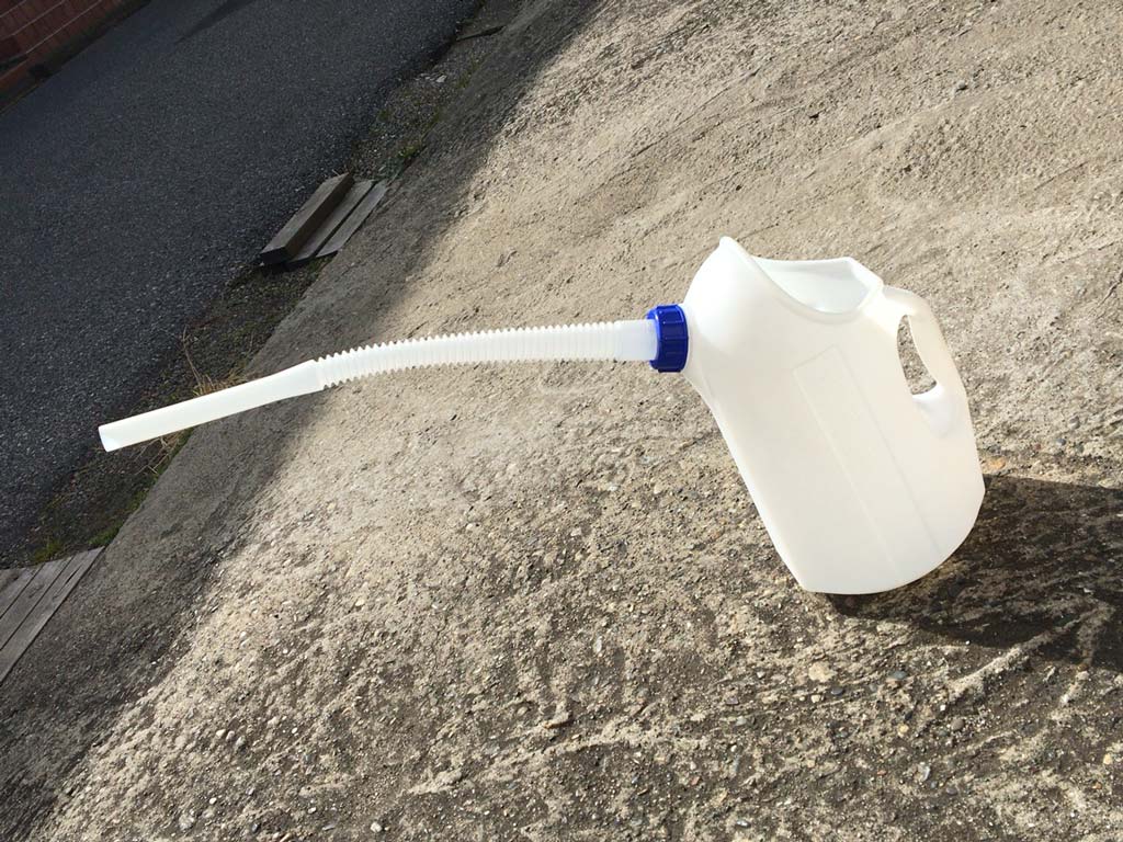 で、新しいジョウゴは容量が6リッターあって良い感じだな…と思うのだけど、ノズルが異様なほど長い。