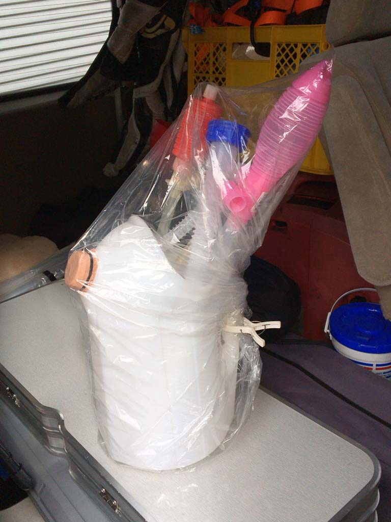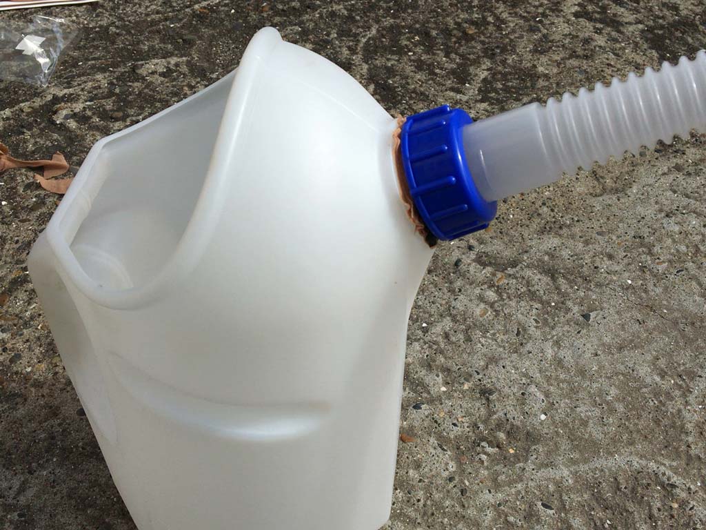 ガソリンで使ったジョウゴってそのまま車内に入れておくと、意外とガソリンくさくてクラクラするのでビニール袋に入れておきたいんだけども、ノズルとスポスポが違う角度で飛び出してるとビニールが浮いてる部分が多くてすぐにいろんなとこに引っかけて破いてしまうので、ノズルを外してしまっておくのは良いアイディアだ。
