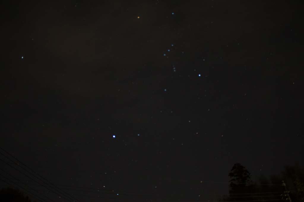 使ったのはEOS70DとキットレンズのEF-S18-55 STMで、AFとスタビを切ってSSを15秒から8秒くらいまでとかISOをいろいろ試してみたりいろいろやってみたけど、初めての星空撮影は惨敗と言わざるを得ないf(^_^;)