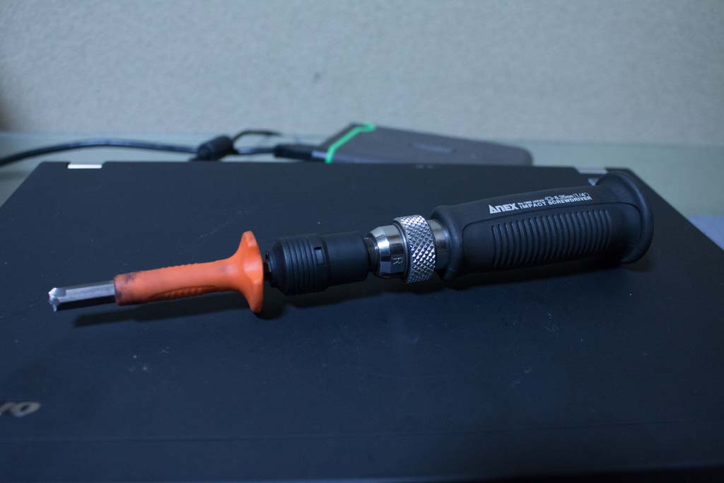 ナメてしまったボルトを引っ叩いて外すという素敵なアイテムですね。