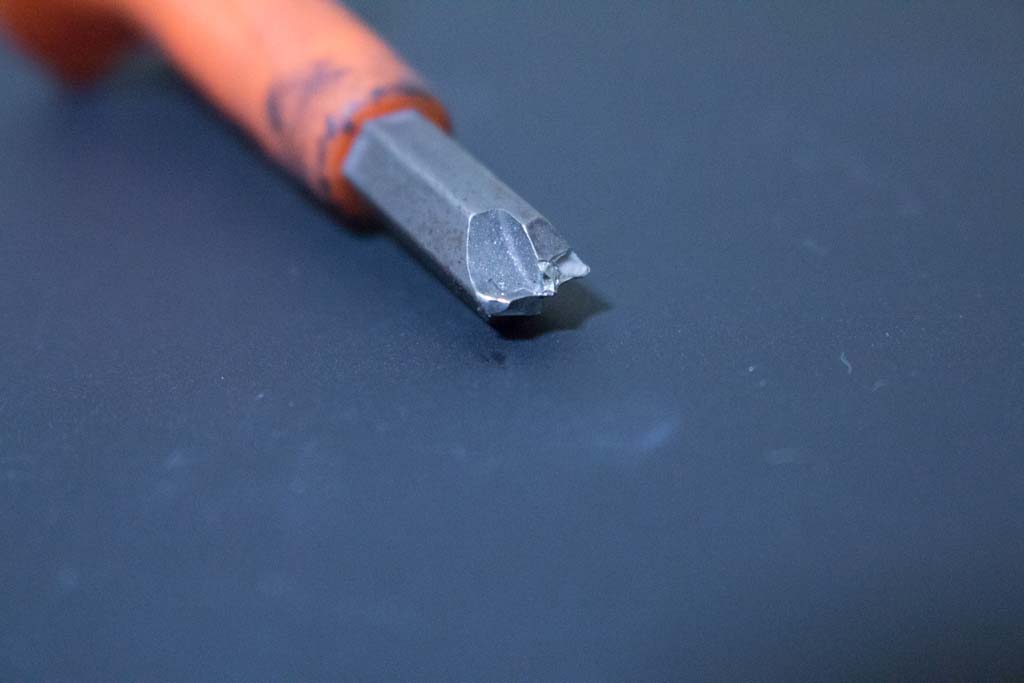 自慢の工具で颯爽と頭のナメたネジを取り外して良いところを見せようと思っていただけにそれはもうショックだったんですけどね、ショックついでにビットの先端も破壊してしまって二重でショック。