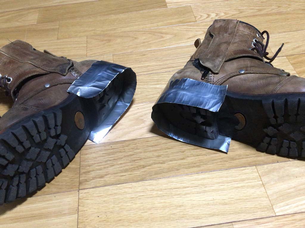 踵を盛るにあたって壁が必要なので、アルミテープを適当に貼り付けた。