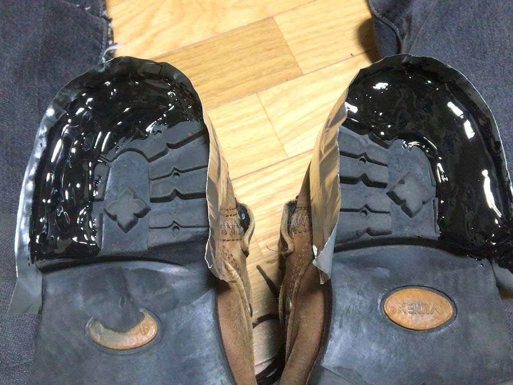 中まで十分固まったのを確認したら、空洞になってしまってる部分にSHOE GOOを詰めておいた。