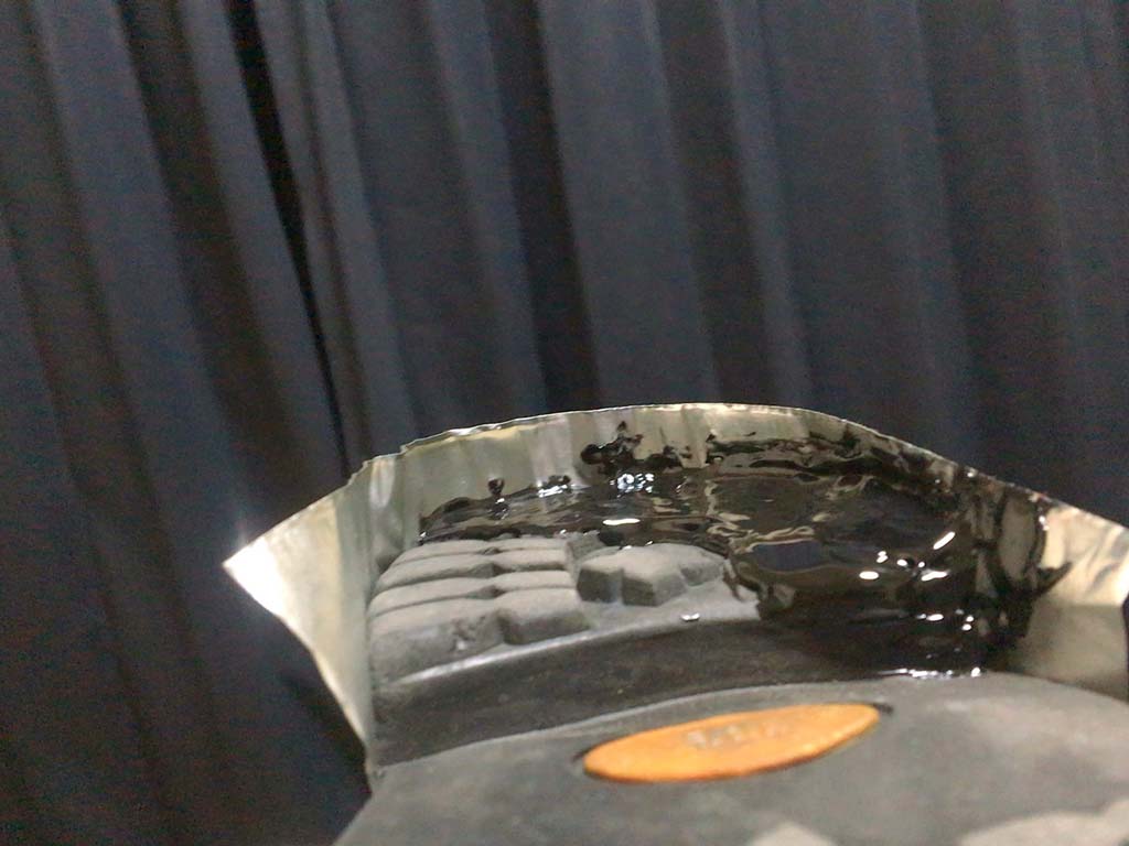 部屋の中の温度が低いので24時間放置しても足りないかと思いつつ、表面を触ってみたらそれなりに固まっていたのでアルミテープを剥がしてみる。