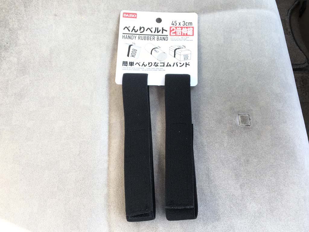 …だったのだけど、結局そこにくっついてくれれば良いんだし、100円ショップで適当なゴムを買ってきて括り付けといたら良いんじゃね??と近所のダイソーに行ってみた。