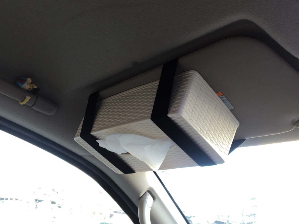なので、ネットでちょっと調べてみたら、ティッシュをサンバイザーにくっつけるっていうのは割とオーソドックスらしく、専用のバンドみたいなのも売ってる様子。
