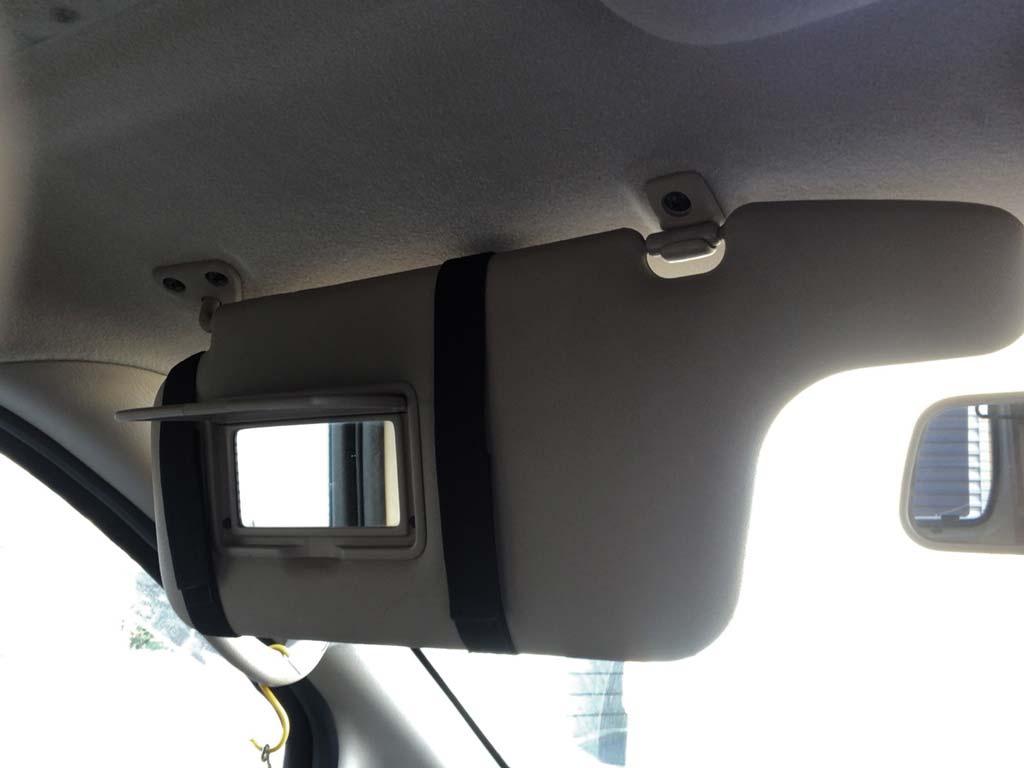 そういった訳で対策を考えた結果、ずいぶん前に誰かがブログかツイッターに助手席のサンバイザーにティッシュをくっつけるってのをやってなかったか…と。