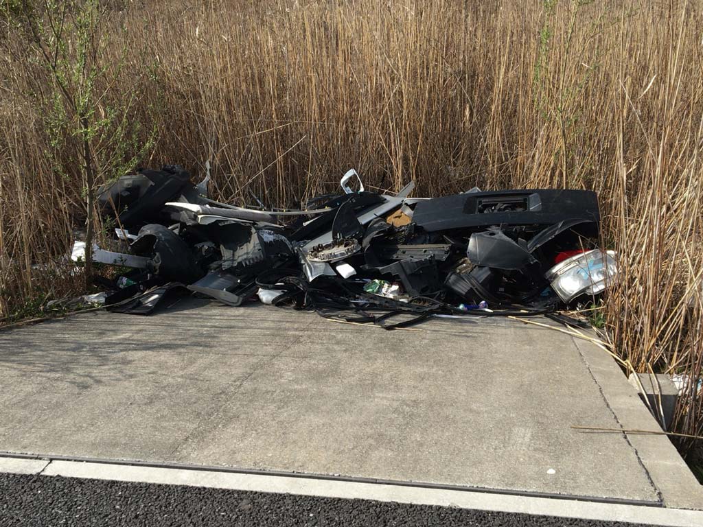 今住んでる部屋から20メートルとかそのくらいのところなんですけども、ホンダの車のバンパーとかそういうパーツがごっそり捨ててある…。
