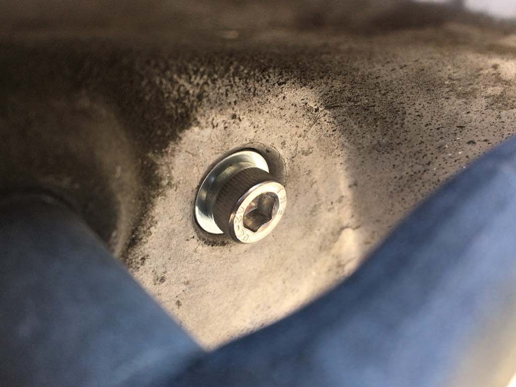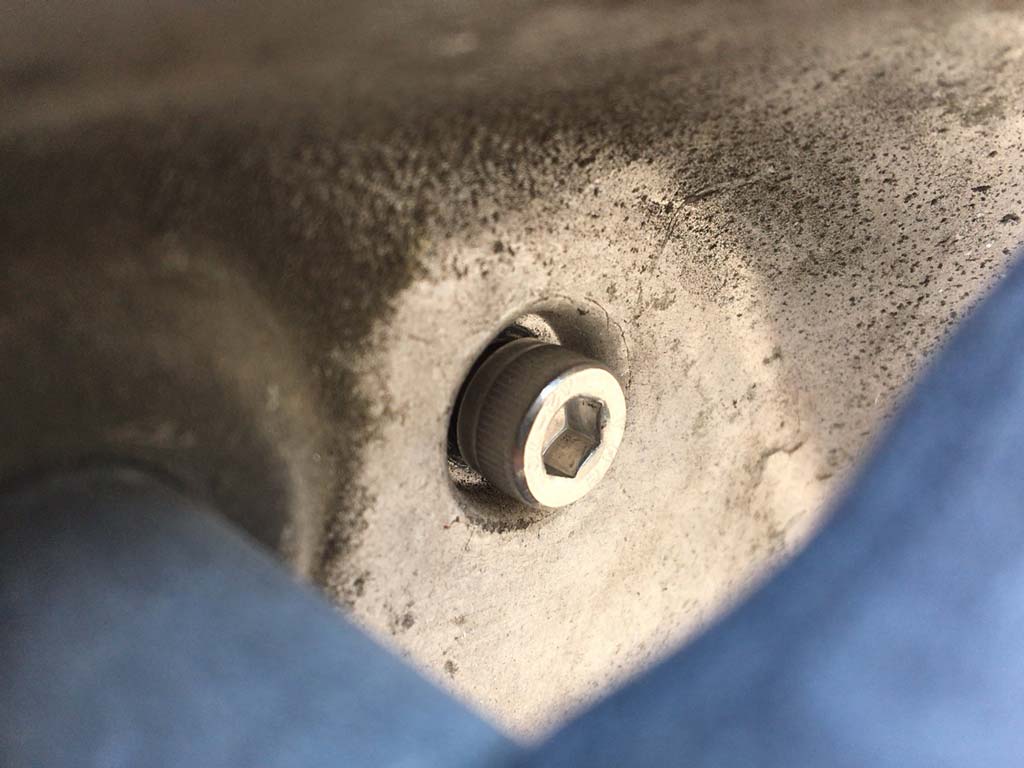 Mollet V100のクランクケースのボルトなんですけども、スクーターのクランクケースと言えばプラスのボルトで留まっていることが多くて、ちょいちょいナメてしまうので六角レンチで作業できるようにしようっていう定番のあれでしょ!?って思うじゃないですか。