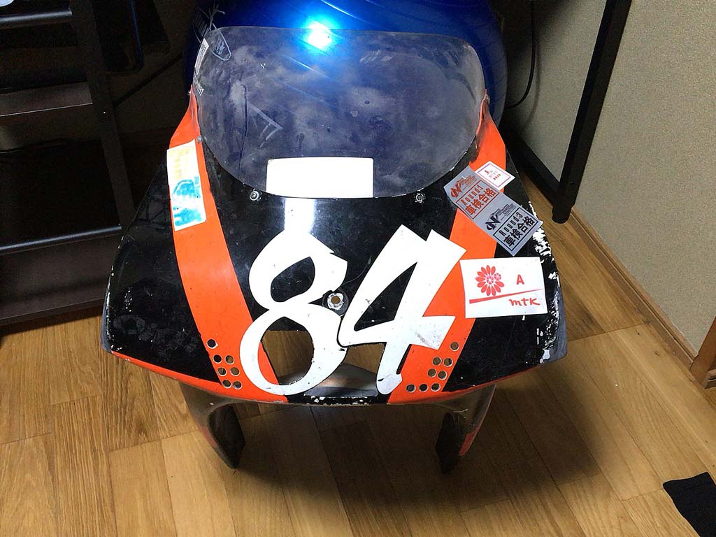 というか、僕のVFRのアッパーカウルには内側の真ん中にGarage鬼装改のステッカーを貼ってあるんですけども、位置が絶妙過ぎて他の人と接近戦になった時に良い感じのところが隠れてしまってちょっと勿体ないことになってしまうことに気が付いたので、ちょっと改良したいな、と。