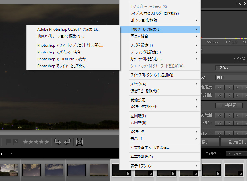 ライトルームで選択した複数のプレビュー上で右クリックして出てくるメニューに他のツールで編集っていうのがあって、その中にPhotoshopでレイヤーとして開くっていうメニューがあんじゃないですかっ!!