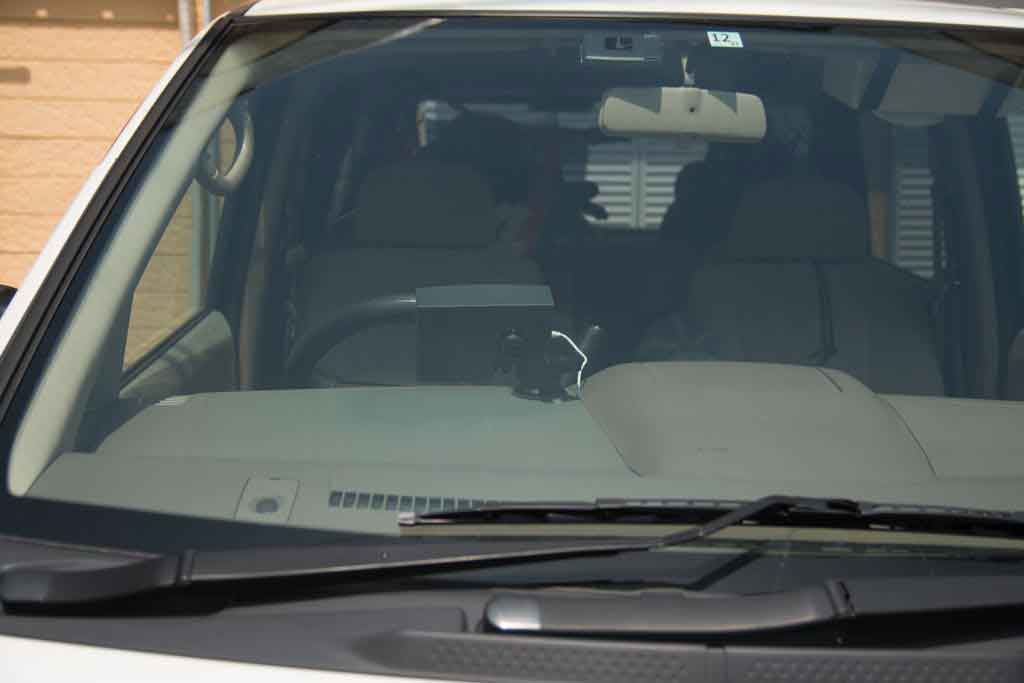 外から見ても運転席から見ても、iPhoneに直射日光は当たらずに良い感じに日陰ができた。