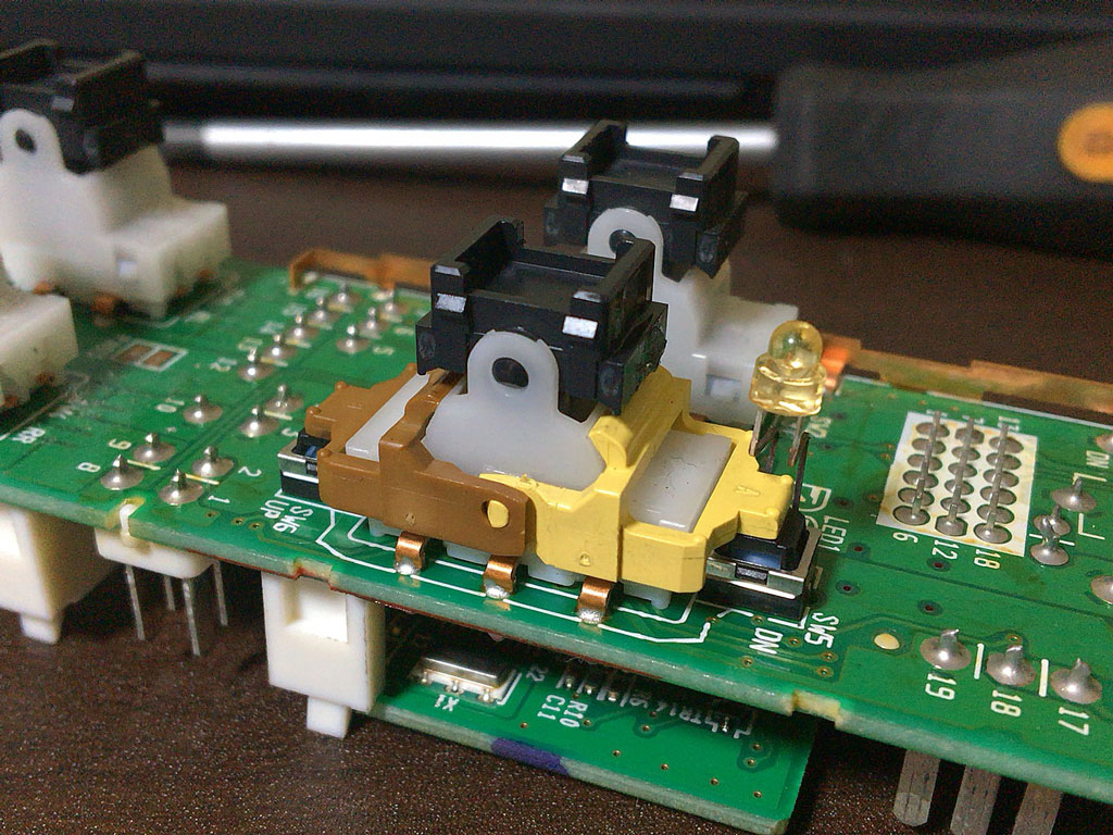この黄色っぽいのと黄土色っぽいのの下に更に押し込むスイッチがある。