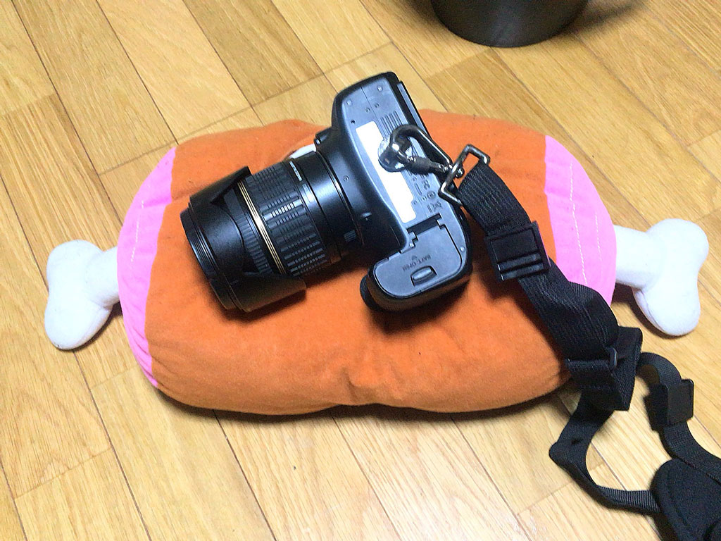 何もなければこのまま純正のストラップを使ってたんだと思うんですけども、最近は星の写真を撮るのの練習を熱心にしてたりしますけども、三脚に載せて長時間露光とかしてると、ストラップが風に煽られて揺れたりするのが嫌で、外してるのですね。
