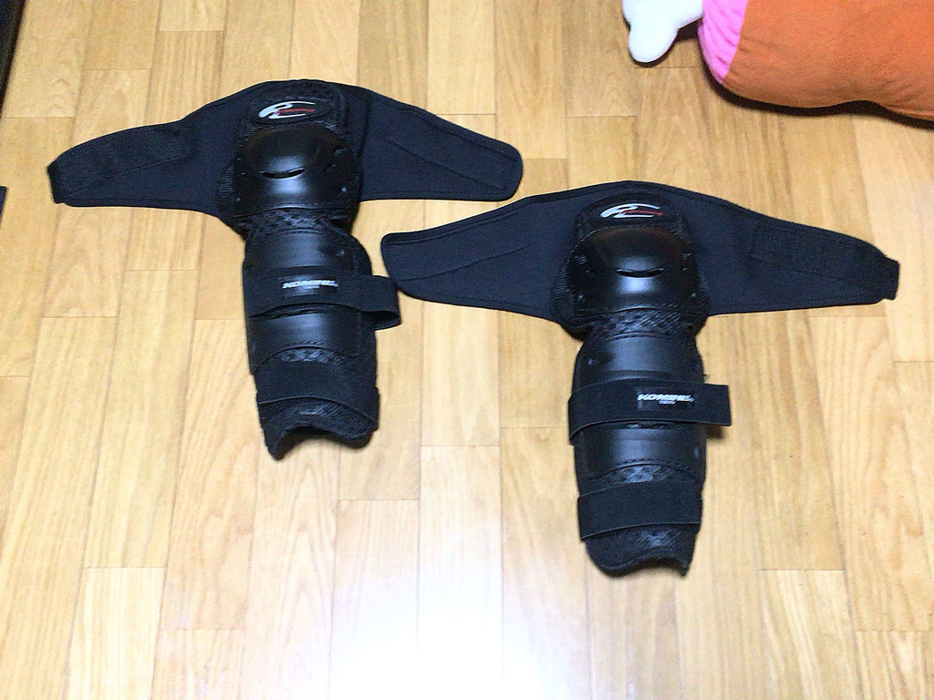 脛はブーツに守られているからともかく、膝のプロテクターがない革だけの状態でサーキットを走るなんていう暴挙はさすがに『人生そのものが無茶苦茶』でお馴染みの僕でもしたくないので、汎用品のプロテクターを買ったんですよね。
