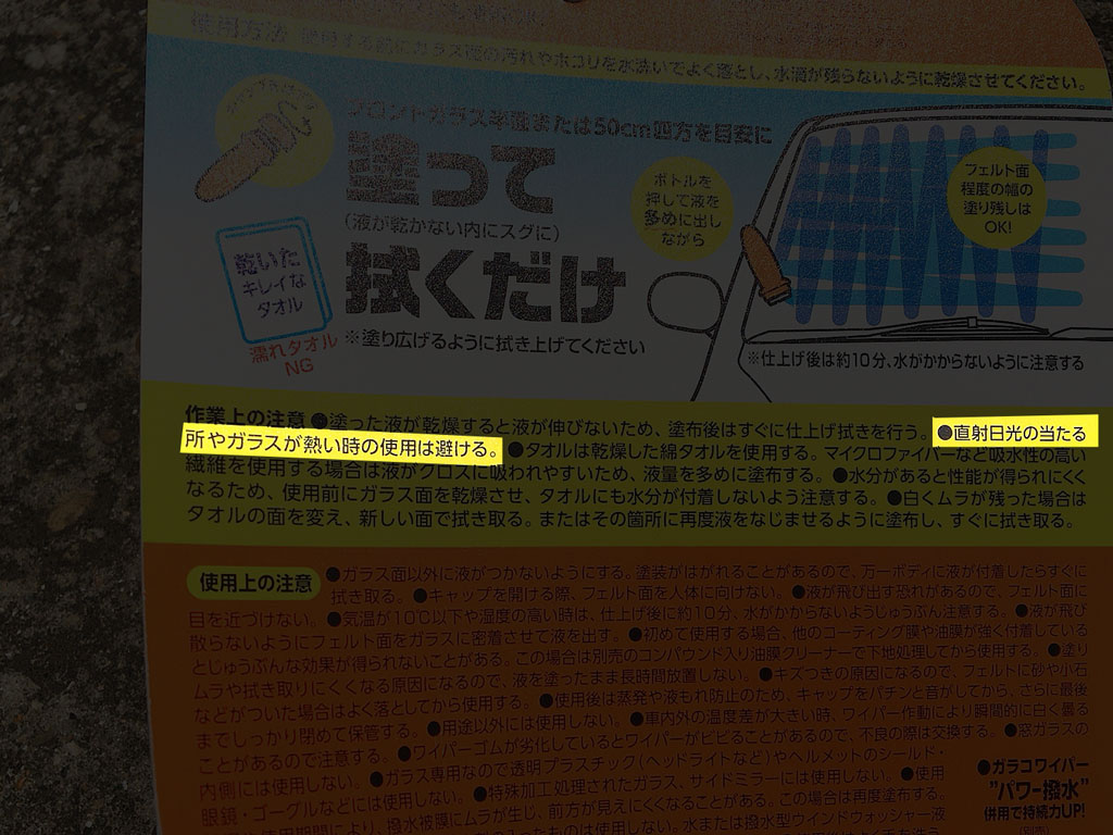 いざとなったらパーツクリーナーで落としてしまえば良いので焦るようなもんでもないとして、せっかくガラコ欲が出たことだし、今度今まで使ってたタイプのヤツを買い直してくるかな…と、改めて台紙を見てみると…