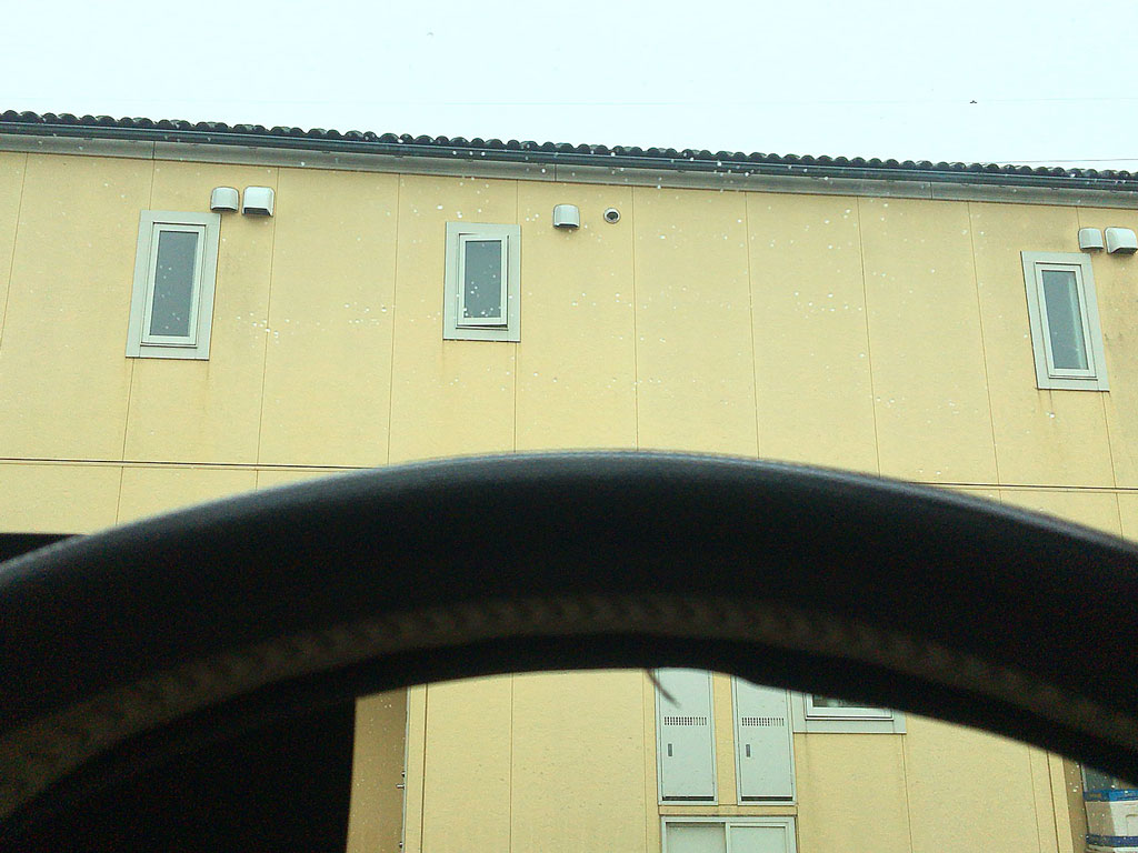 ウィンドウに落ちてくる雨粒もビタっとならないでちゃんと丸く弾いているようなので、拭き残しで窓が汚れている割には視界良好。