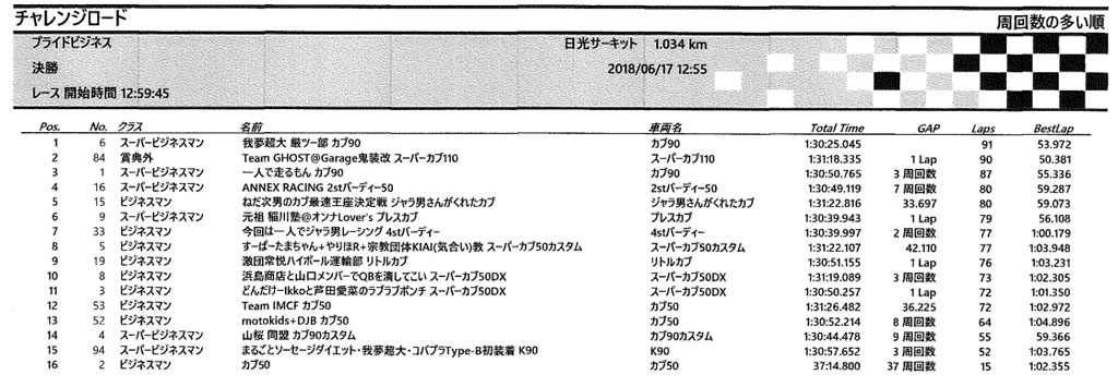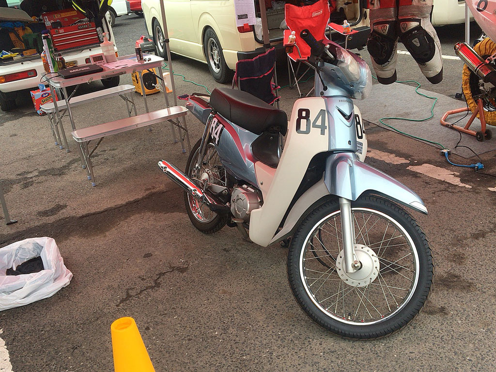 この前の日チャレでは初めて開催のプライドビジネスっていうカブとかその手のビジネスバイクの耐久レースがあって、カブだと出られるのは50と90のみらしい。