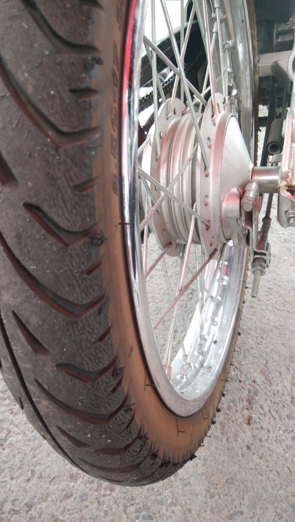 次の日からまたハットリが通勤で乗ってる訳だけど、端が溶けて鼻くそついてるようなアグレッシブなタイヤを履いたカブで通勤してるヤツもそうそうおりますまい(笑)